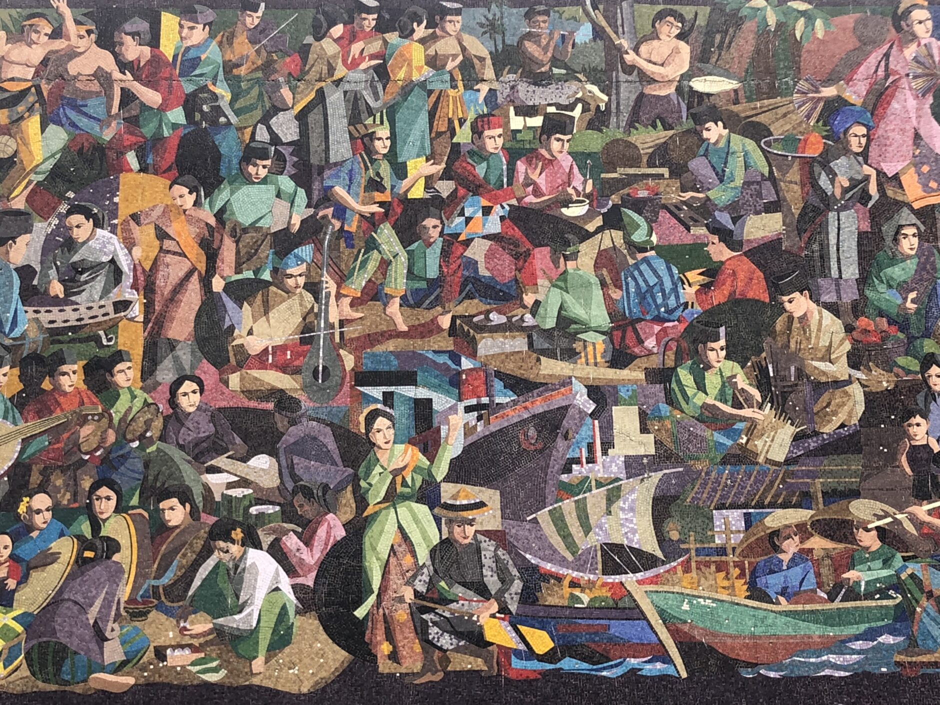 This larger-than-life mosaic mural takes up part of the facade of the public library located in the heart of Bandar Seri Begawan. The intricate mural depicts cultural and social scenes typical of Brunei. Activities such as weaving, fishing and rice planting are beautifully illustrated using millions of color-infused, mosaic tiles. The Dewan Bahasa Pustaka Mural perfectly conveys the essence of Brunei while featuring its many different ethnic groups.