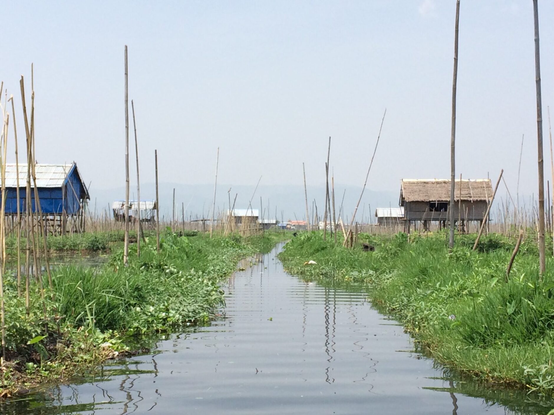 The fields were floating gardens. Fruits and vegetables grew in abundance on the surface of the water. Local farmers created floating beds by using weeds from the bottom of the lak. The weeds are then held together with bamboo sticks. The floating gardens are extremely fertile. Apparently, all the tomatoes consumed in Myanmar are cultivated on Inle Lake.